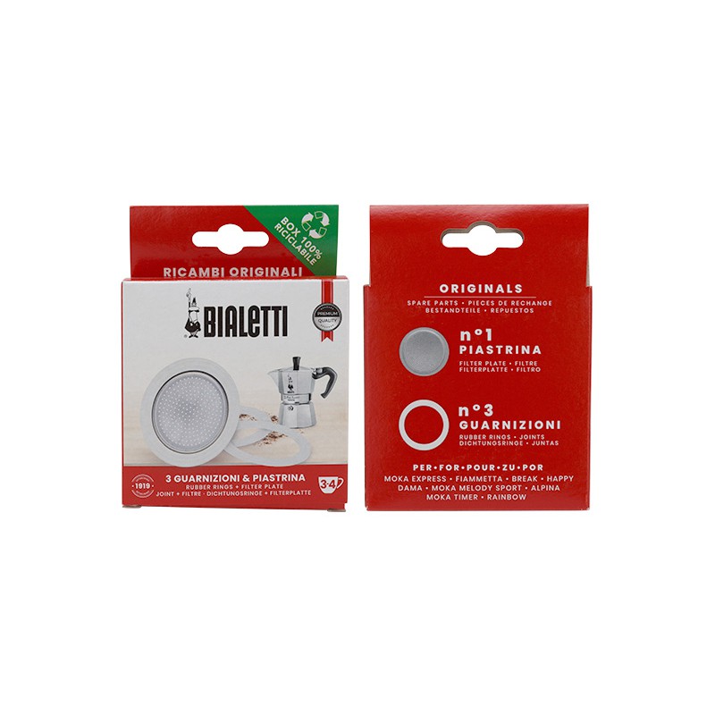 - Joint et filtre compatibles avec les modèles Bialetti 3 et 4 tasses Moka Express/Dama/Pause/Moka Easy/Dama Easy