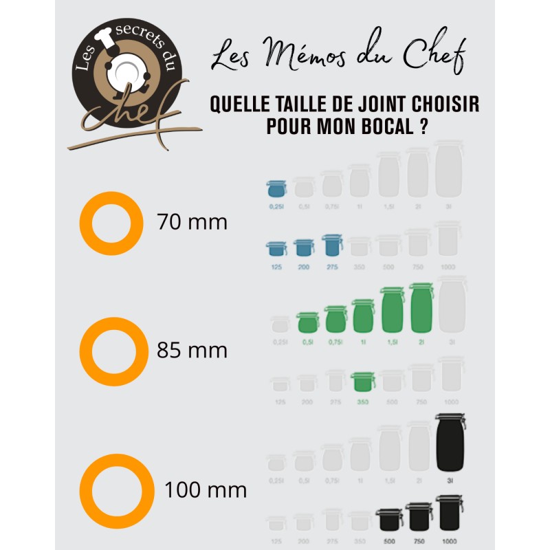 Les Rondelles Super joint 85 mm pour baocaux Le Parfait sont spécialement conçues pour s’adapter sur nos Bocaux et Terrines Le Parfait Super. Elles présentent l’avantage d’être universelles, c’est-à-dire de convenir parfaitement pour des préparations à base de fruits et légumes, de viandes, poissons et plats cuisinés.