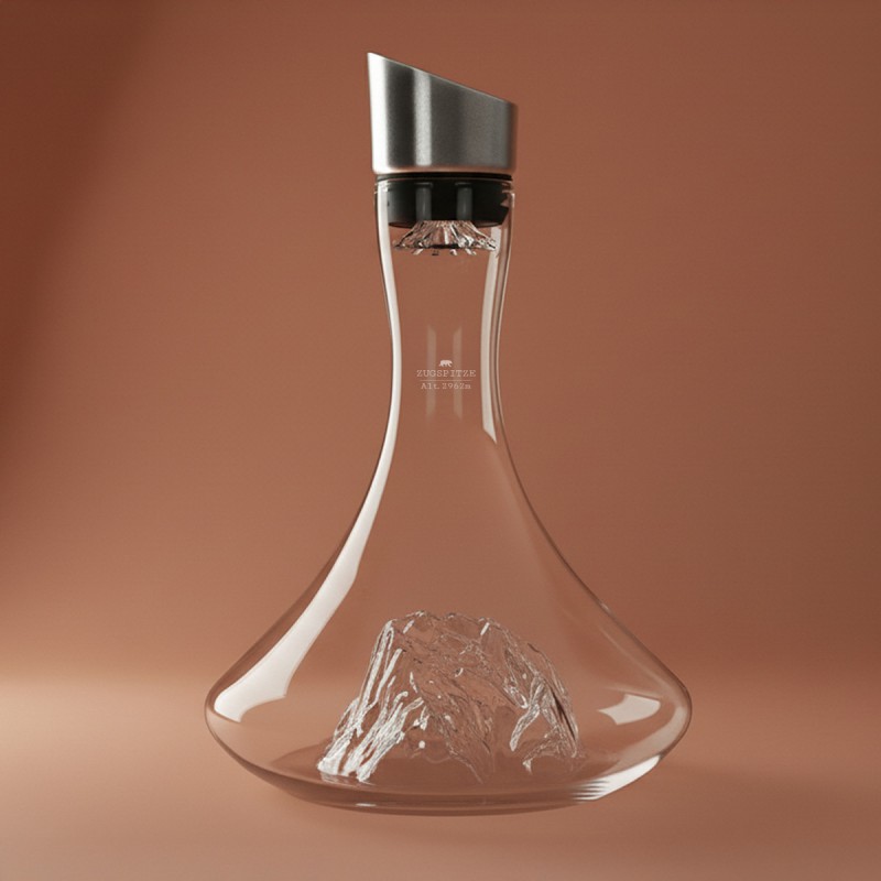 La Carafe à Décanter Vin en Verre Borosilicate Montagne - Zugspitze Topographic Alaskan Maker et son coffret, forment un véritable objet déco, qui apporte un « voyage visuel » à table, évoquant les montagnes, parfait pour les amateurs de nature, design et alpinisme.