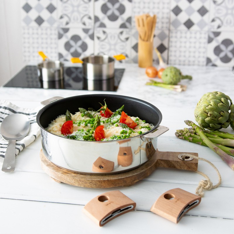 Le set de 2 poignées amovibles en Bois Casteline Cristel s'adapte parfaitement à tous les faitouts, poêles et sauteuses amovibles Cristel, tout en garantissant sécurité et modularité et en permettant une manipulation plus efficace et un gain de place dans vos armoires.