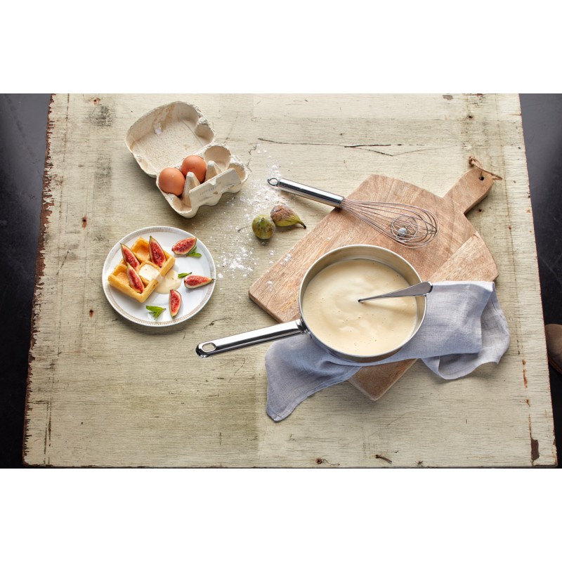 La sauteuse conique est idéale pour la préparation de sauces délicates. La répartition homogène de la chaleur évite que la sauce ne caille ou n’attache, et l’arrondi spécial à la face intérieure est parfait pour mélanger et fouetter. Un délicieux sabayon ou une savoureuse sauce au chocolat sera ainsi à la portée de tous. Elle est aussi idéale pour laisser cuire doucement de petits légumes.