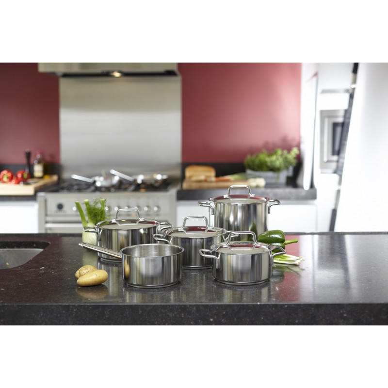 La collection Apollo par Demeyere est constituée de casseroles, poêles et poêlons, sauteuses, marmites et faitouts représentant la batterie de cuisine parfaite pour les jeunes couples et les cuisiniers amateurs les plus exigeants. Chaque ustensile de cette collection est destiné à répondre à des besoins précis et peut être nettoyé au lave-vaisselle.