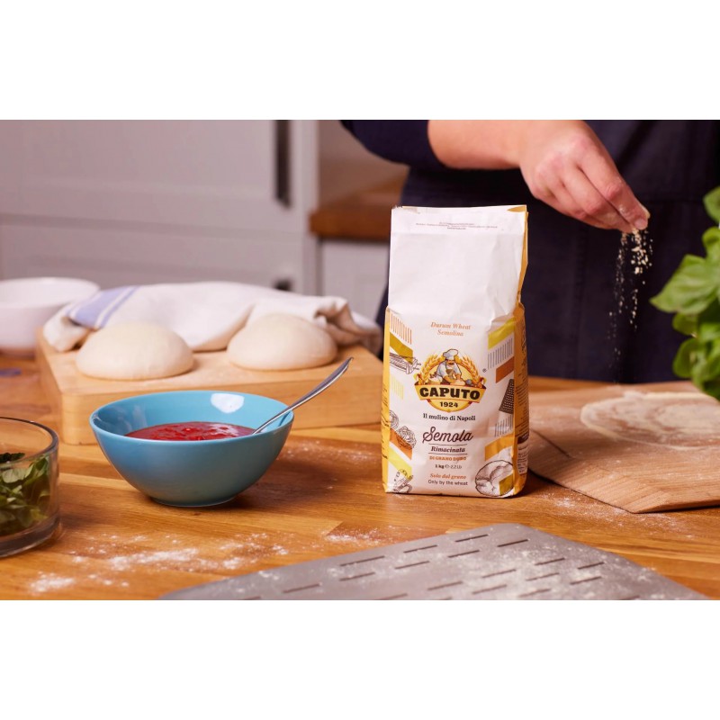 La Semoule Fine de Blé Dur pou Pâtes 1kg de Caputo, connue chez les italiens comme Semola Rimacinata est idéale pour la préparation des pâtes fraîches commes les lasagnes, maccheroni alla chitarra, gnocchi, fettuccine.