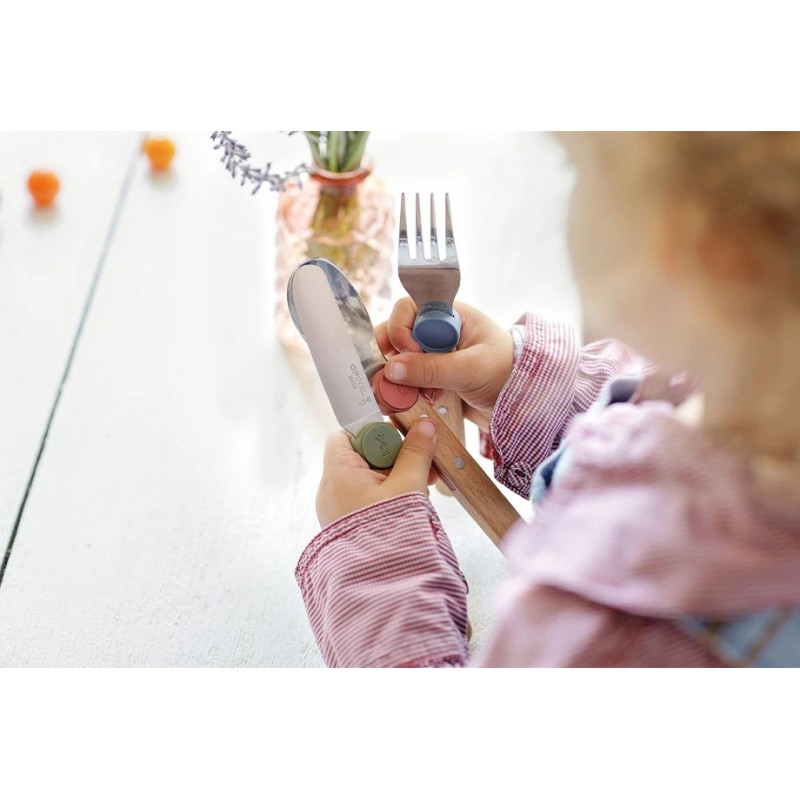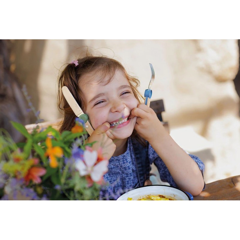 Le Petit Gourmet Set Couverts pour Enfant avec Clips Vert Corail Bleu 3 pcs Opinel est composé de 3 couverts ergonomiques avec clips, pratiques, faciles à manier, colorés et sûrs, qui accompagnent les plus petits dans leurs premiers repas en toute autonomie.