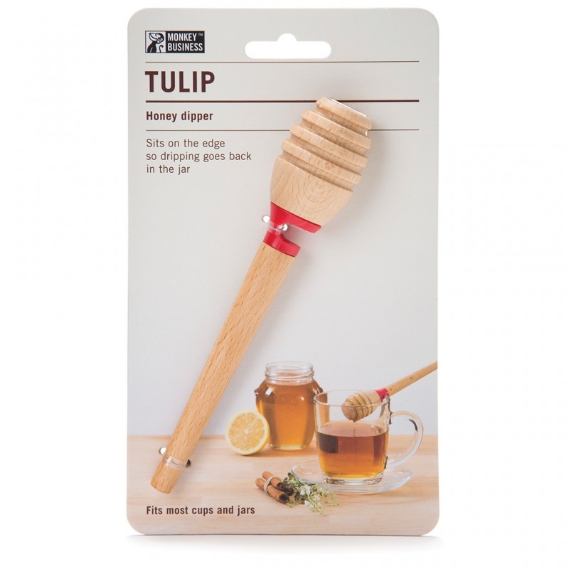 La Cuillère à Miel Tulip de Monkey Business vous permet, grâce à l'encoche placée à la fin du manche, de redéposer la cuillère directement sur le pot de miel ainsi plus de gaspillage, tout retourne dans le pot. Le bâton à miel Monkey Business, grâce à sa forme spéciale, vous permet de verser la quantité idéale de miel dans vos thés, sur vos plats ou pour tout autre préparation.