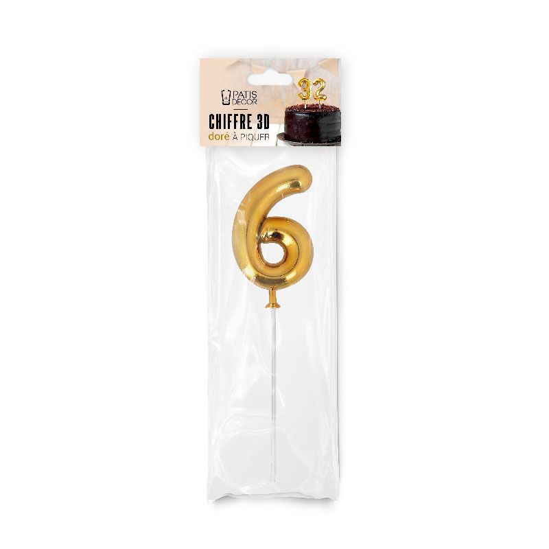 La Décoration pour Gâteau Ballon Doré 3D Chiffre 6 Patisdécor est un décor non comestible à piquer dans toutes vos pâtisseries, pour célébrer un moment festif. Grâce aux différents chiffres, personnalisez votre gâteau en composant vous-même un âge ou une date pour célébrer un anniversaire, ou encore une année, pour fêter le passage à l'an neuf !