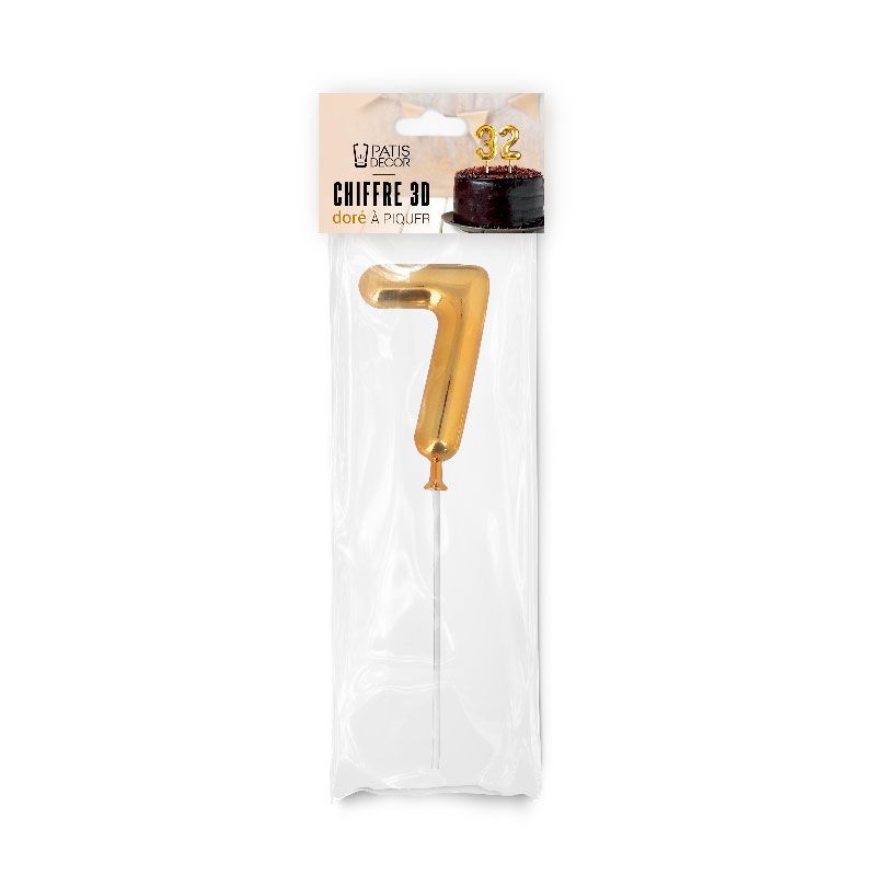 La Décoration pour Gâteau Ballon Doré 3D Chiffre 7 Patisdécor est un décor non comestible à piquer dans toutes vos pâtisseries, pour célébrer un moment festif. Grâce aux différents chiffres, personnalisez votre gâteau en composant vous-même un âge ou une date pour célébrer un anniversaire, ou encore une année, pour fêter le passage à l'an neuf !