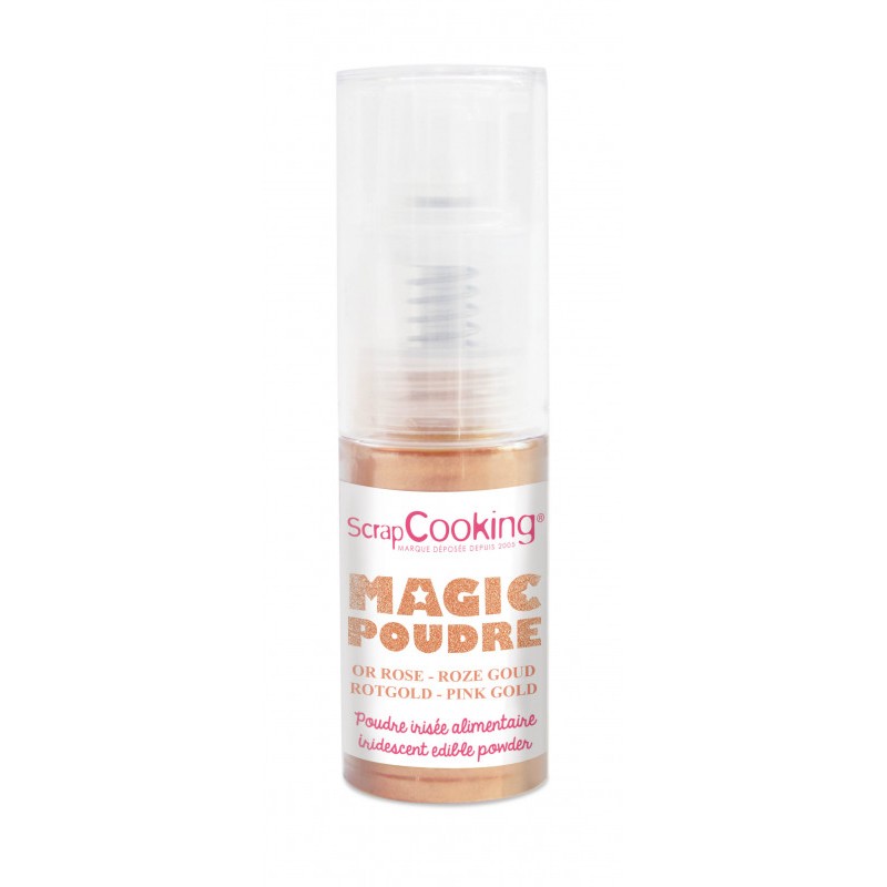 Le Spray Poudre alimentaire rose gold 7 g de Scrapcooking apporte une touche d’éclat et d’élégance à toutes vos créations pâtissières : bûches de Noël, cupcakes, macarons, gâteaux d'anniversaire, entremets, pralines, tablettes de chocolats, pâtes à sucre etc...