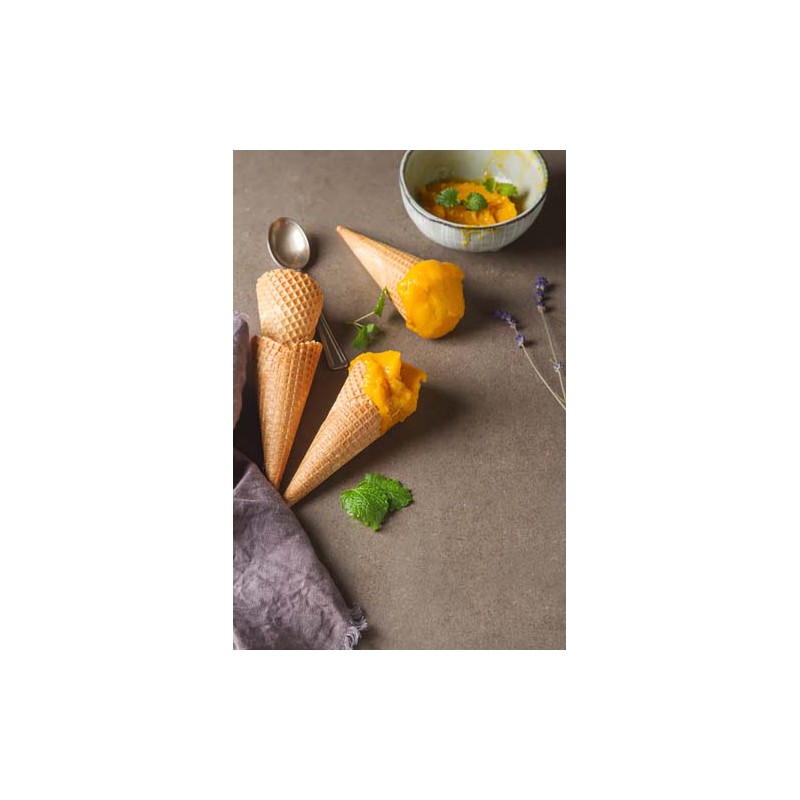 La Plaque à Cornet de Glaces M0027 pour gaufrier WA 102A & 103 Twins Frifri est un set de plaques amovibles pouvant s'adapter aux gaufriers Multex FriFri. Ce moule M0027 vous permettra de réaliser de délicieux cornets de glace ou des galettes pour glace croustillantes et dorées à souhait, par exemple pour vos napolitains. La Plaque à Cornet pour WA 102A & 103 Twins FriFri, comme son nom l'indique, vous permettra de cuire une fine gaufrette ronde à enrouler autour d'un bâton en bois un d'un moule conique tant qu'elle est encore chaude et malléable. Dégustez-la ensuite avec les créations glacées de votre choix.