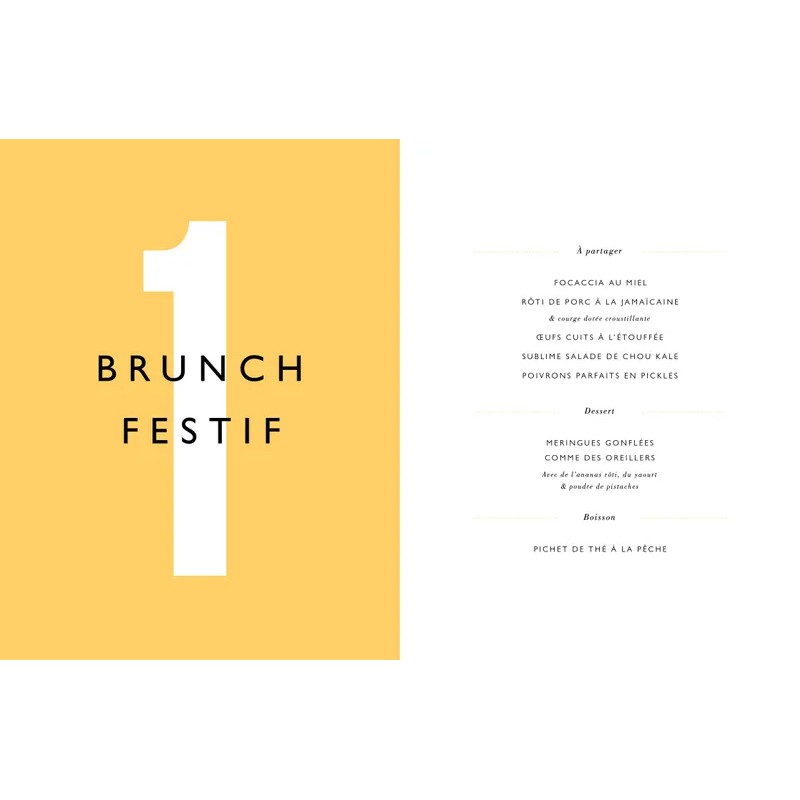 Avec "Ensemble", Jamie Oliver vous invite à explorer 8 menus complets, spécialement conçus pour 4 à 14 convives, afin de transformer chaque repas en une expérience conviviale et gourmande. Chaque chapitre s’ouvre sur un menu détaillé, suivi de recettes illustrées par des photos alléchantes, pour un total de plus de 120 recettes variées et accessibles.