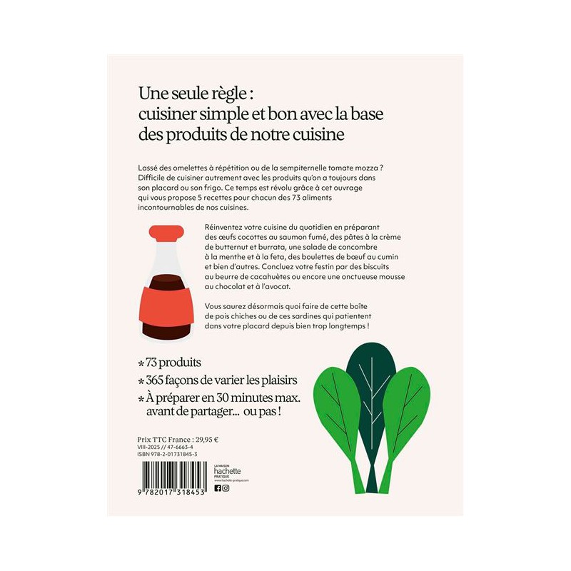 Découvrez "Basiques" d’Isabelle Kanako : 5 recettes pour chacun des 73 aliments incontournables de votre cuisine. Réinventez vos repas avec des idées simples, savoureuses et anti-gaspi !Basiques – Isabelle Kanako : La fin de la routine en cuisine !En avez-vous assez des omelettes à répétition ou de la sempiternelle tomate-mozza ?Avec "Basiques", Isabelle Kanako vous propose 5 recettes pour chacun des 73 aliments incontournables de vos placards et de votre frigo. Fini le manque d’inspiration : transformez vos ingrédients du quotidien en plats créatifs, savoureux et surprenants !Réinventez votre cuisine du quotidienDes idées pour tout, même pour les restes : Que faire de cette boîte de pois chiches ou de ces sardines oubliées ? "Basiques" vous donne des solutions malines et gourmandes.Des recettes variées et accessibles : Oeufs cocottes, saumon fumé revisité, pâtes à la crème de butternut et burrata, salade de concombre à la menthe et à la feta, boulettes de boeuf au cumin… Il y en a pour tous les goûts !Des desserts qui changent tout : Terminez en beauté avec des biscuits au beurre de cacahuètes ou une mousse au chocolat et avocat, onctueuse et originale.Un livre anti-gaspi et 100% pratique"Basiques" est bien plus qu’un livre de recettes : c’est un guide pour cuisiner autrement, sans se ruiner et sans perdre de temps. Grâce à des ingrédients simples et des étapes claires, vous apprendrez à varier les plaisirs et à éviter la monotonie à table.Isabelle Kanako : L’experte de la cuisine maligneAvec son approche pédagogique et inventive, Isabelle Kanako vous prouve qu’il est possible de cuisiner bon, beau et varié avec ce que vous avez déjà sous la main. Un livre idéal pour les débutants comme pour les cuisiniers confirmés en quête d’inspiration !Caractéristiques : - Auteur: Isabelle Kanako- Nombre de pages : 640 pages- Format : 184 x 234 mm- Date de parution : 20/08/2025