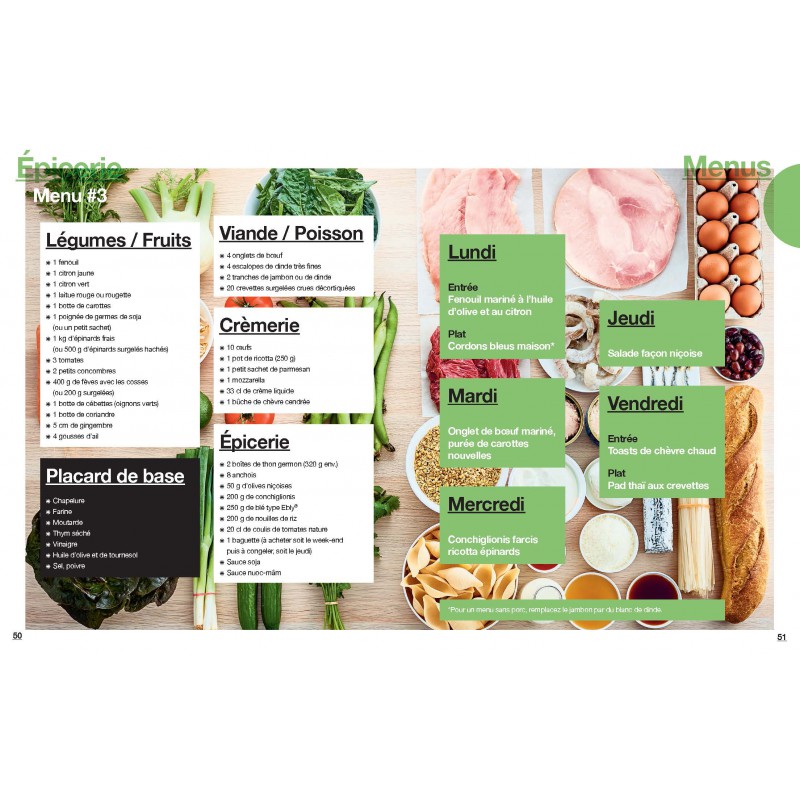 - 16 menus hebdomadaires complets, soit 80 repas équilibrés pour toute la famille.