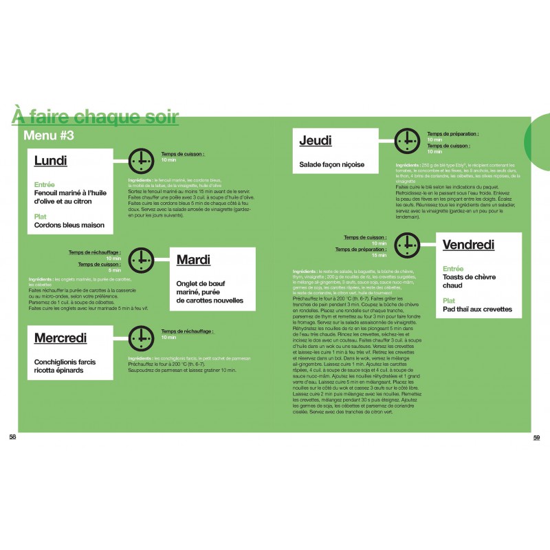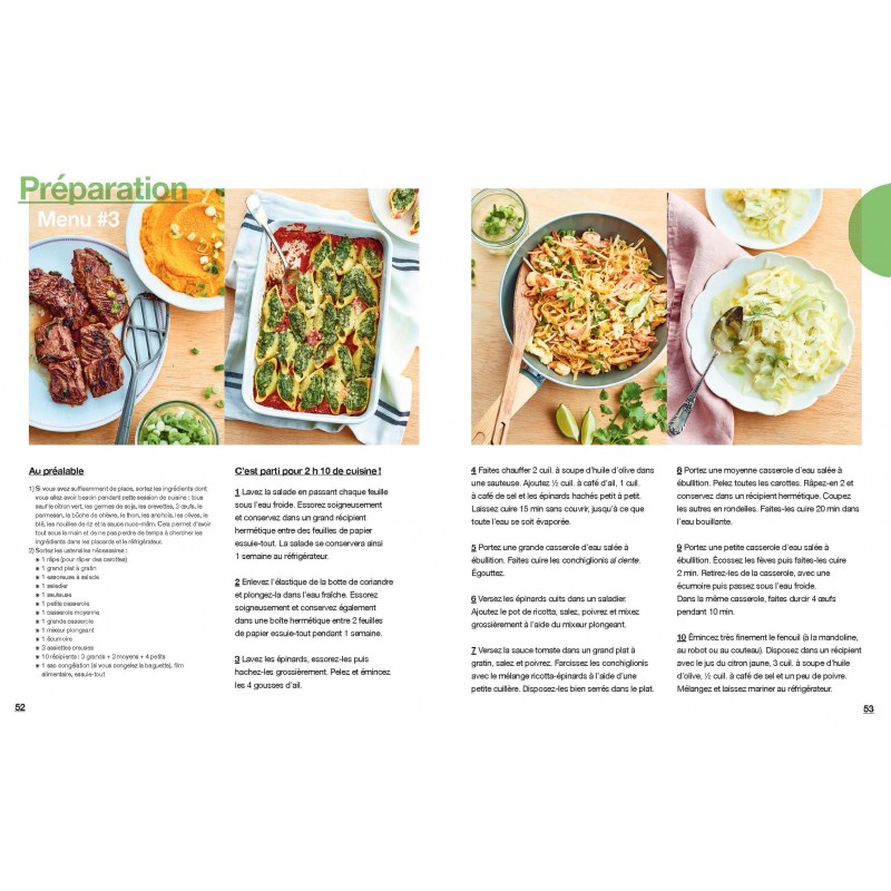 2h en Cuisine pour Toute la Semaine est un livre de cuisine comprenant 16 menus hebdomadaires complets, soit 80 repas équilibrés pour toute la famille.
