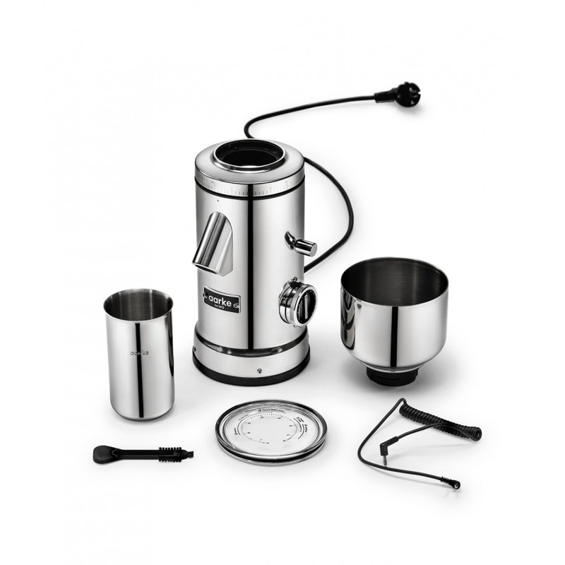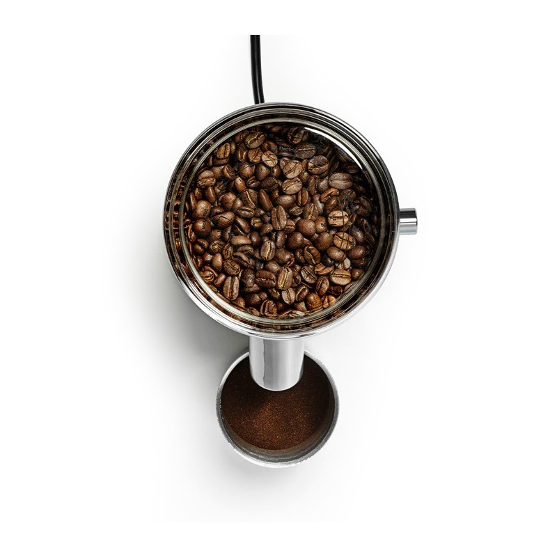 Le Moulin à Café Electrique Chrome Brillant Coffee Grinder de la marque scandinave Aarke est une machine pour moudre le café, design et élégante, dotée d'un broyeur de haute qualité à mouture réglable, et qui peut être connectée à la cafetière Coffe Maker assortie de la même marque. Le moulin à café électrique est l'accessoire idéal pour obtenir des boissons chaudes aux grains de café fraîchement moulus, dont tout l'arôme est libéré du plus intense à la plus grande amertume.