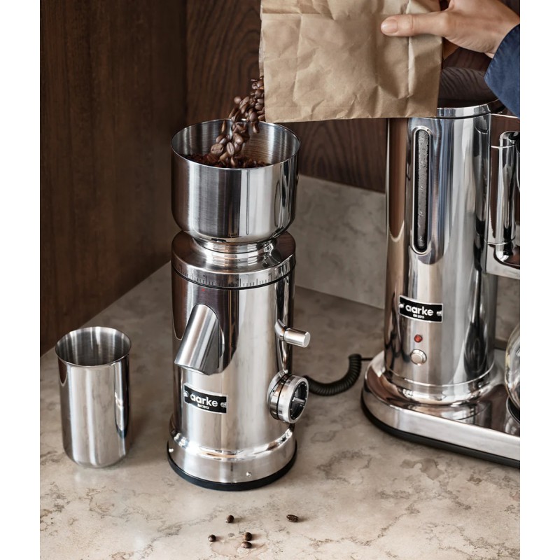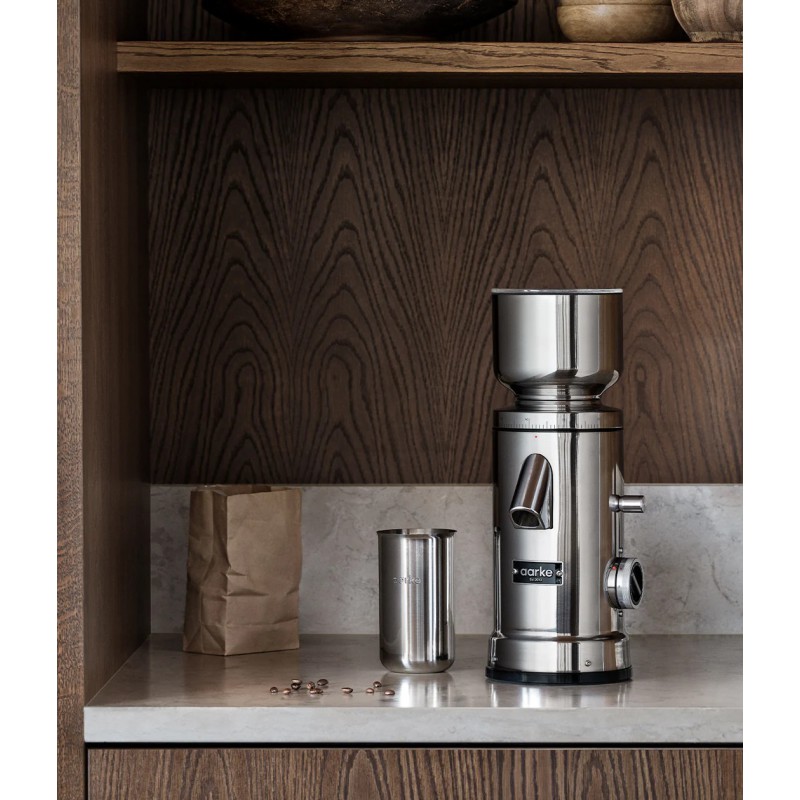 Son design minimaliste et raffiné en fait un objet esthétique qui s'intègre harmonieusement dans n’importe quelle cuisine. Fiable et facile à utiliser, le moulin à café Aarke est conçu pour garantir fraîcheur et qualité à chaque tasse.