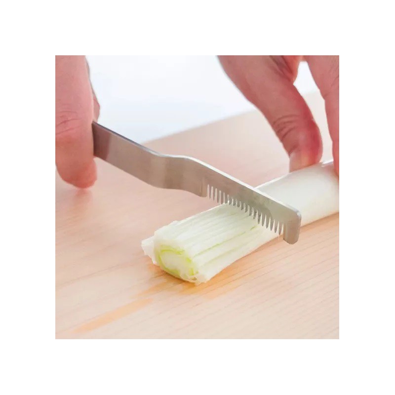 Le Couteau à Julienne pour Poireaux en Inox Brossé 16 cm Saku EatoCo est couteau à la forme d'un peigne, qui permet de découper un poireau dans le sens de la longueur, en le taillant en fine julienne.