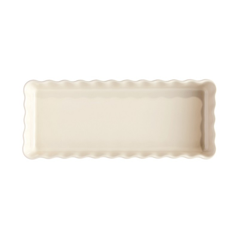 Le Plat à Tarte rectangulaire Argile Blanc Cassé Emile Henry est une tourtière pratique et élégante dont les bords hauts vous garantiront de réussir toutes vos tartes sucrées et salées, quiches, tourtes, clafoutis, pies généreuses avec beaucoup de garniture ou gratins de légumes et de pâtes.