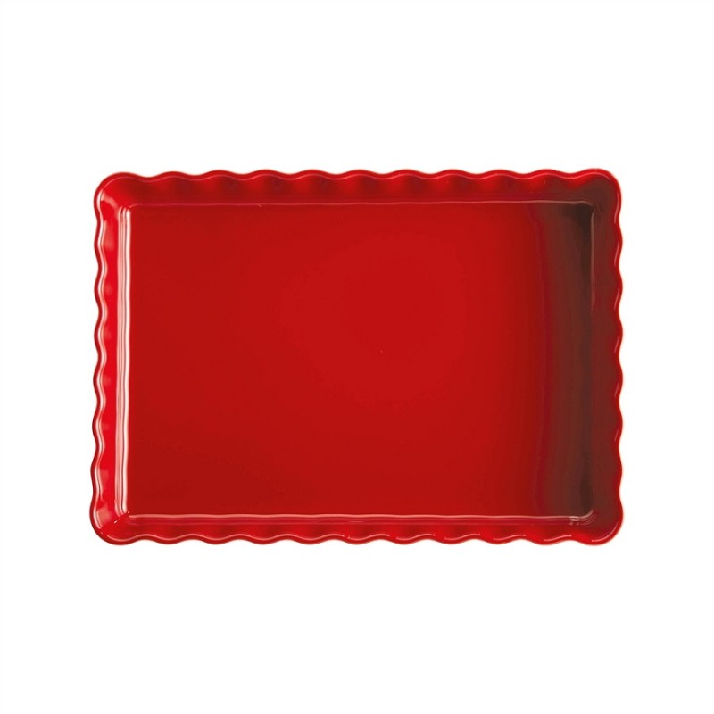 Le Plat à Tarte rectangulaire Rouge Grand Cru Emile Henry est une tourtière pratique et élégante dont les bords hauts vous garantiront de réussir toutes vos tartes sucrées et salées, quiches, tourtes, clafoutis, pies généreuses avec beaucoup de garniture ou gratins de légumes et de pâtes.