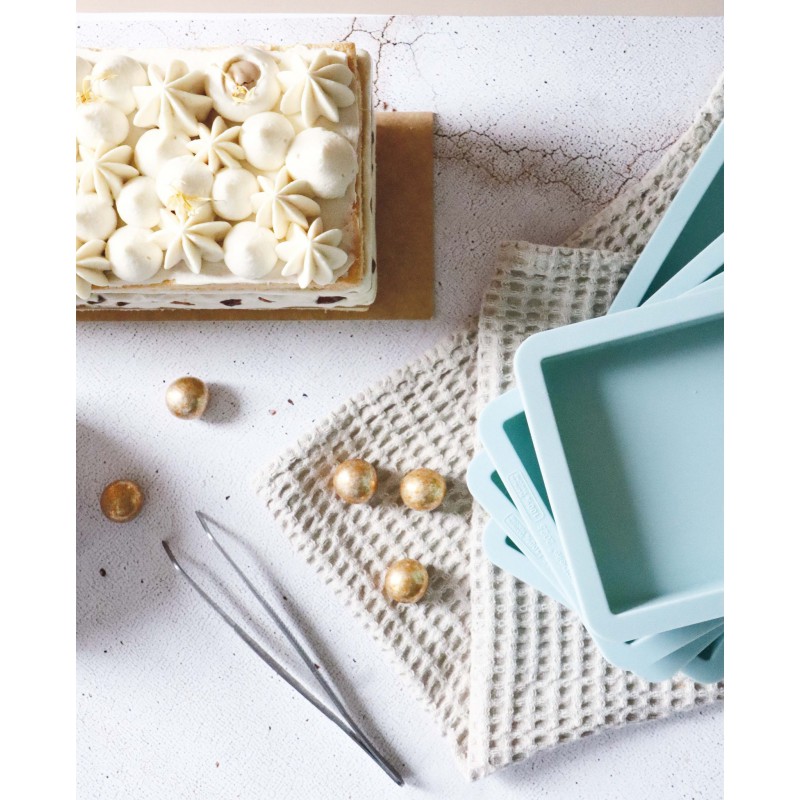 Fabriqués en silicone de haute qualité, les moules sont flexibles et résistants au four jusqu'à +230°C, et au congélateur jusqu'à -20°C. Avec des dimensions de 25 x 10 x 2 cm, les moules rectangulaires permettent de cuire plusieurs couches de génoise, mais également préparer des mousses, bavarois, inserts fruits, crèmes etc...
