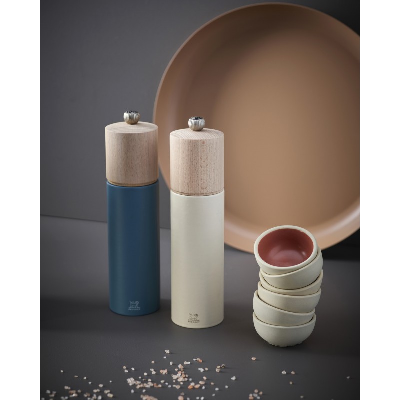 Le Moulin à Poivre Boréal 21 cm Bleu Céleste de Peugeot est un moulin à poivres raffiné et design, conçu pour moudre des grains de poivre. Avec sa magnifique finition bleu mat, associée au bois de hêtre, il ajoute une touche de couleur et d'élégance à votre table à manger ou à votre cuisine.