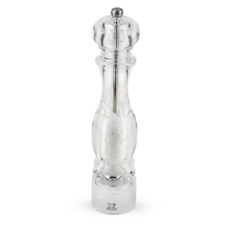 Le Moulin à Sel Nancy 30 cm Peugeot affiche un design classique et intemporel qui trouvera sa place autant dans la cuisine que sur une table. Le design tout en transparence de cette salière vous permet de toujours vérifier la quantité de sel restante. Variez les plaisirs avec des cristaux de sels délicatement aromatisés pour subtilement raviver tous vos plats. Veillez cependant à ne pas utiliser de sel humide ni de fleur de sel.