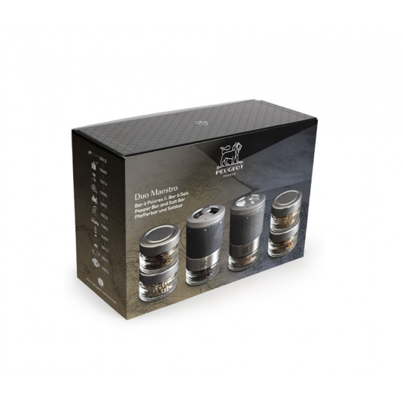 • Maestro Bar à Poivres et Bar à Sels Duo Moulins Bois Graphite U'Select 13 Pcs - Peugeot