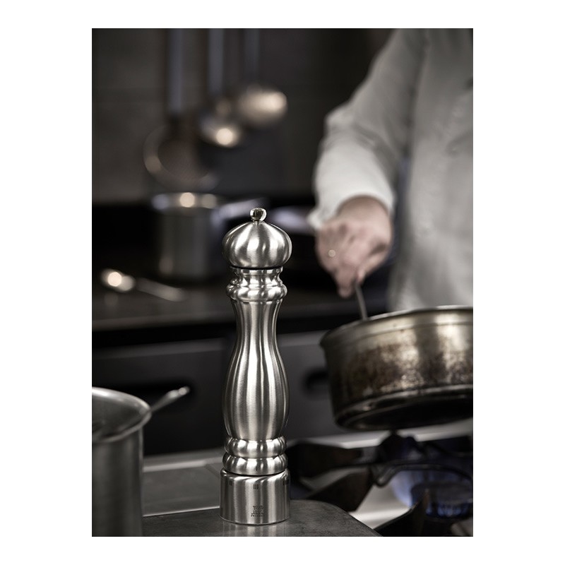 Le Moulin à Poivre Paris Chef 22 cm en Inox Peugeot est le modèle de moulin égérie de la marque Peugeot, connue pour son remarquable travail de l'acier. Ce moulin emblématique, adopté par tous les grands chefs, se retrouve désormais sur votre plan de travail et votre table.