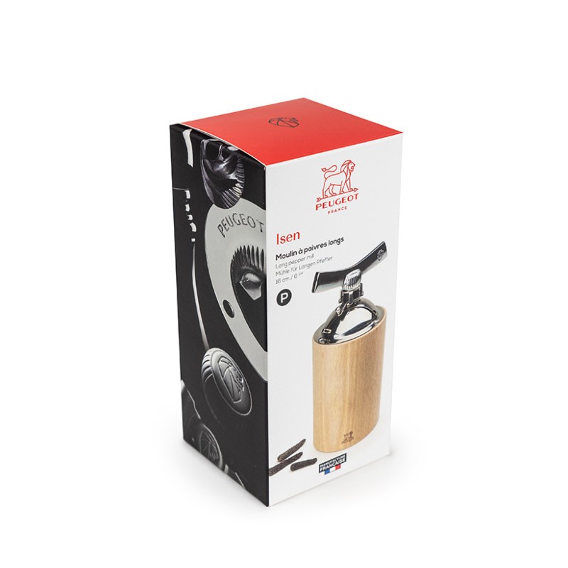 Le Moulin à Poivres Longs 16 cm Isen Peugeot est un moulin idéalement conçu pour moudre des graines de poivre long et des gros grains de poivre. Il est parfait pour les poivres Kampot Cambodia et Takeo Cambodia par exemple.