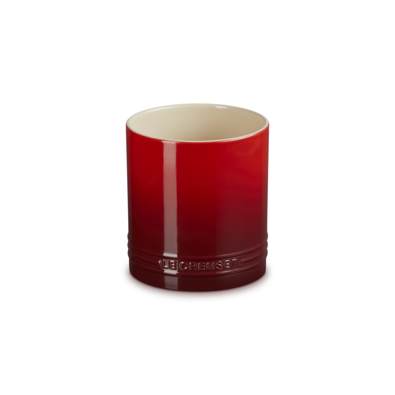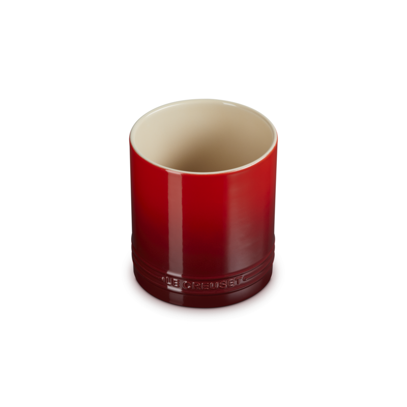 Le pot à ustensiles Signature en céramique Rouge Cerise 14 cm 1,1 L Le Creuset est un rangement robuste et raffiné qui permet de garder toutes vos cuillères, spatules, fouets, pinceaux, louches etc parfaitement organisés et toujours à portée de main.