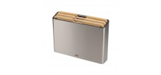 L'étui en acier inoxydable brossé possède des encoches afin de ranger parfaitement les planches en bambou, tout en laissant une circulation de l'air entre elles.
