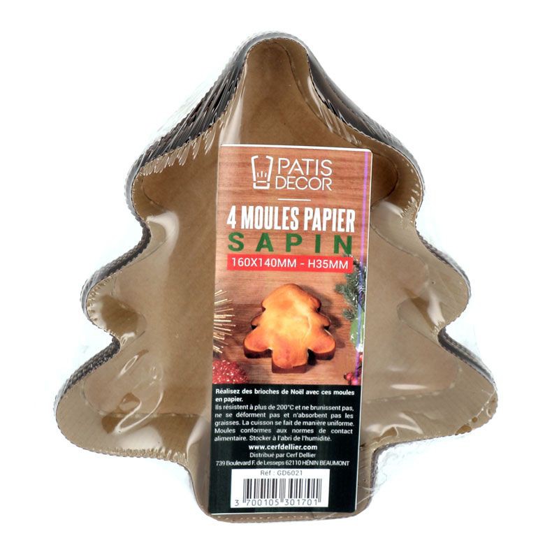 Les Moules de Cuisson en Papier pour Brioche et Cake Sapin de Noël 4 Pcs Patisdécor sont des moules jetables, résistants à +200°C, qui ne se déforment pas et n'absorbent pas les graisses, pour une cuisson homogène et réussie de vos préparations gourmandes.