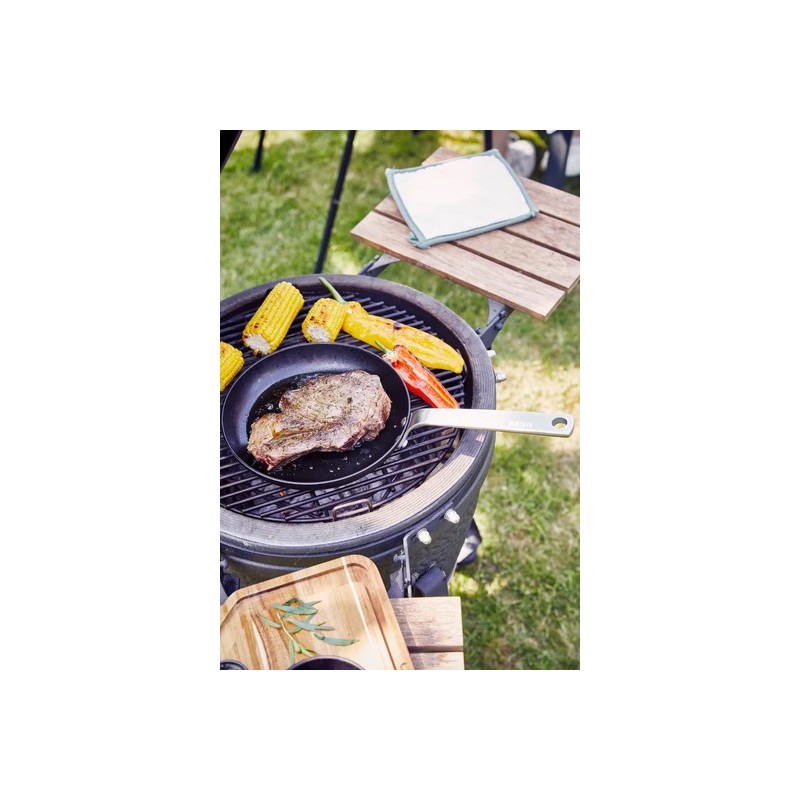La Poêle en Fonte Naturelle Non émaillée 20 cm Stark de Beka est une poêle conçue pour durer toute une vie, sans PFAS et pré-culottée d'une couche antiadhésive naturelle et saine, compatible tous feux, y compris l'induction, le four et sur la grille du barbecue.