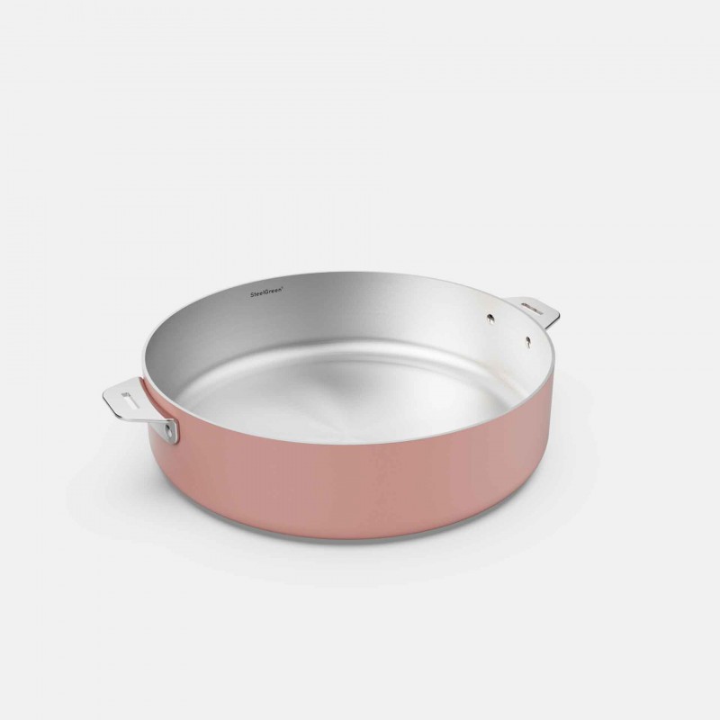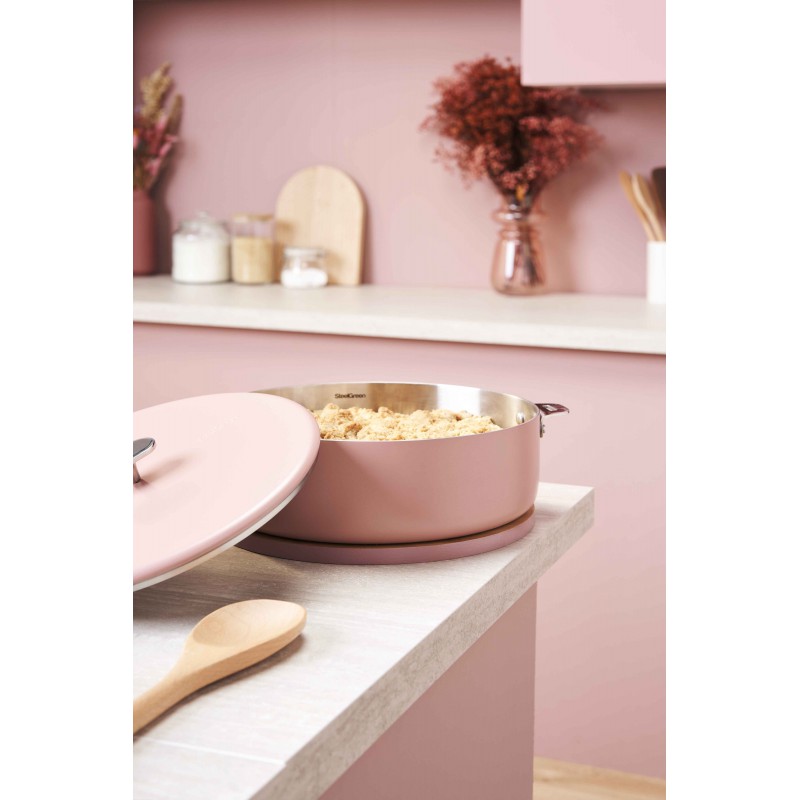 La Merveilleuse Sauteuse Inox Rose Guimauve 28 cm 4,6 l avec Poignées amovibles de Cookut est une sauteuse basse à bord droit, en inox sans nickel, sans PFAS, ni PFOA, idéale pour cuisiner au quotidien pour 2 à 8 personnes. Fabriquée en Inox 3-ply, la sauteuse sans couvercle, légère et maniable, est compatible tous feux, y compris l'induction et le four jusqu'à +220°C. Les poignées et le manche de La Merveilleuse sont vendus séparément.