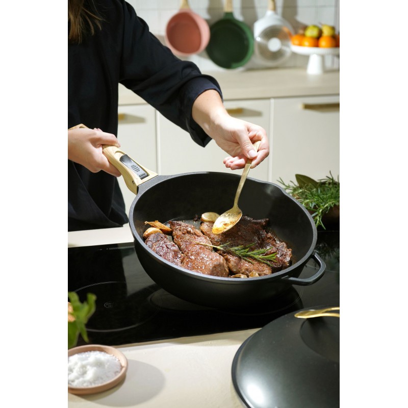 Grâce à ses bords hauts, elle est parfate pour faire sauter des légumes, faire revenir des émincés de poulet, préparer un wok etc.