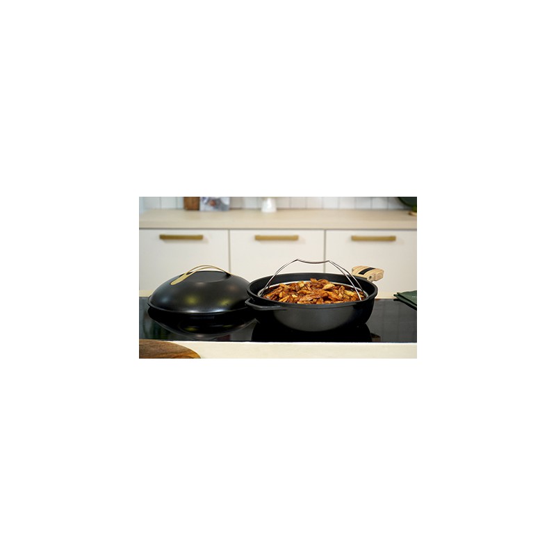 Sa grande taille et son couvercle permettent de l'utiliser comme une casserole et cuire des pommes de terre, une soupe ou encore des pâtes et du riz.