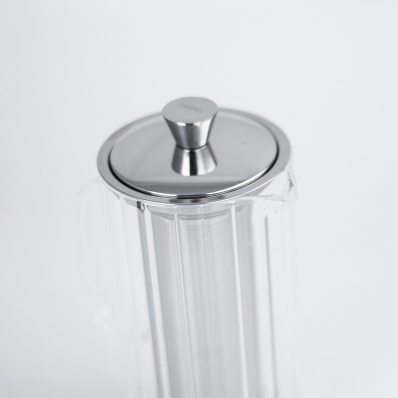 La Théière en Verre avec Filtre en Inox Dévissable Breakfast 1,2 L Cristel est une théière élancée en verre strtié avec anse, élégante et fonctionnelle, avec infuseur et couvercle en inox brillant, très pratique pour la vie de tous les jours.