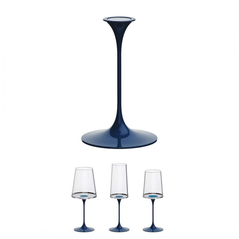Le Pied Modulable Aimanté pour Gobelet/Verre à Vin ou Champagne Bleu Splitglass de Trebonn est une tige en aluminium, conçue pour s’associer aux verres de la série SplitGlass, qui grâce à un aimant puissant, transforme instantanément vos gobelets en verres à vin ou à champagne raffinés et robustes.