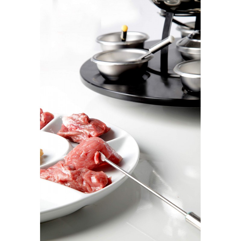 Ideaal voor fondue Bourguignonne, maar ook voor Chinese fondue, fruit- en chocoladefondue, of zelfs plancha-diners. Het biedt een optimale opstelling om van elk ingrediënt te genieten zonder dat de smaken vermengd raken.