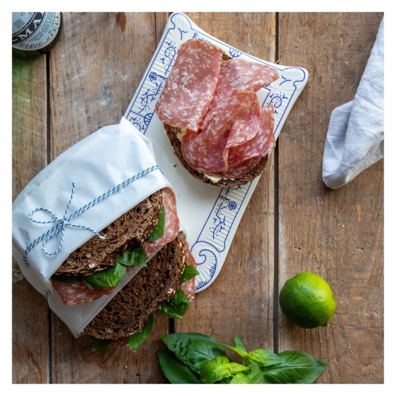 De rechthoekige ontbijtplank is ideaal voor het beleggen van brood, maar kan ook worden gebruikt als serveerplank voor aperitieven, om worst of een paar stukjes kaas te presenteren, of voor desserts, om kleine gebakjes te presenteren. Het heeft een gat aan het uiteinde voor een goede grip en is ook handig om de plank aan een haak in de keuken te hangen.