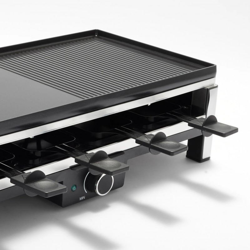 De raclettegrill voor het hele gezin wordt geleverd met 8 antiaanbakpannetjes met spatels, zodat kaas snel en gemakkelijk smelt.