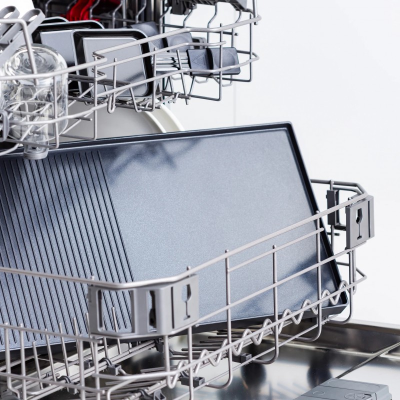 De omkeerbare PFAS-vrije plaat van gegoten aluminium (51 x 25 cm) heeft twee zones: één glad en één geribbeld. De gladde zone is perfect voor het dichtschroeien van voedsel, zoals op een bakplaat of teppanyakigrill. De "plancha"-zijde is bijzonder effectief voor schaaldieren, vis, vlees en groenten; maar ook voor eieren en spek, perfect voor een heerlijk ontbijt of brunch. Het geribbelde oppervlak kan als grillplaat worden gebruikt, ideaal voor vlees en groenten.