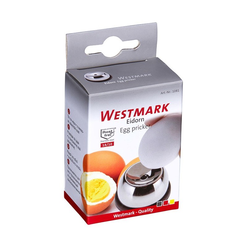 Met de eierprikker Westmark maak je een klein gaatje in de schaal van je ei om te voorkomen dat het barst tijdens het koken. Het gat gemaakt met het doorboorde ei zal de lucht verwijderen die zich tussen de schaal en het membraan bevindt. Dus je ei zal niet barsten als het kookt in kokend water.
