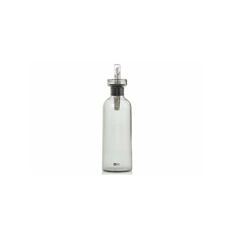 De Ad Hoc 500 ml grijze glazen fles voor olie of azijn met roestvrijstalen schenktuit is een fles die zowel als olie- als azijnkruik kan dienen, zodat u uw salades, rauwe groenten en andere bereidingen eenvoudig op smaak kunt brengen.