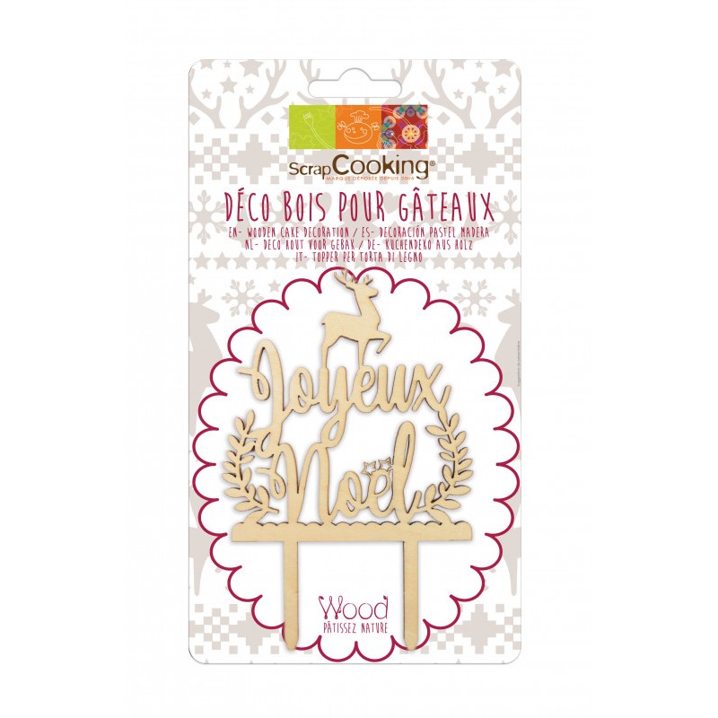 De Scrapcooking Houten Kerstdecoratie is een taarttopper met de inscriptie "Merry Christmas", perfect voor je kerstblok!