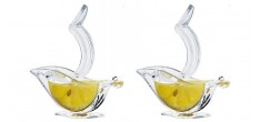 DeCitruspres 1/2 Schijfjes Acryl Set 2 dlg maakt het mogelijk om eenvoudig halve citroenen te persen en zonder uw handen te bevuilen.