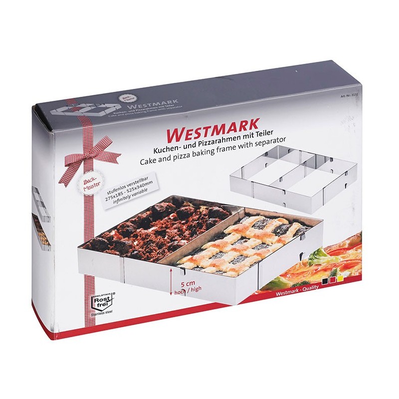 De Westmark rechthoekige taartring heeft een lengte van 27 - 52 cm breed en is 18 - 34 cm breed. Door het gebruik van roestvrij staal wordt de warmte van de oven snel en gelijkmatig doorgegeven aan uw taart. Gebruik de Westmark taartring voor het bakken van zoete en hartige taarten.