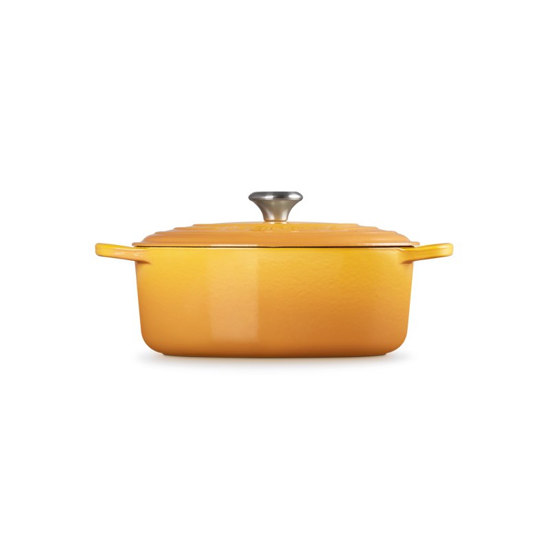 De Le Creuset Signature Gietijzeren Oval Cocotte 4,7 l Vulkanische Sinaasappel is ideaal om te laten sudderen en laat je de smaken van weleer herontdekken. Boeuf bourguignon, kalfsblanquette, carbonnades, pot au feu, gestoofd vlees en andere traditionele langzaam gegaarde gerechten hebben binnenkort geen geheimen meer voor u!