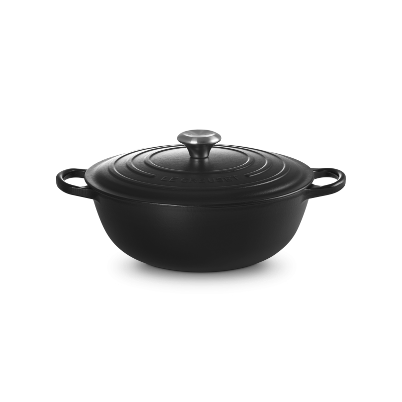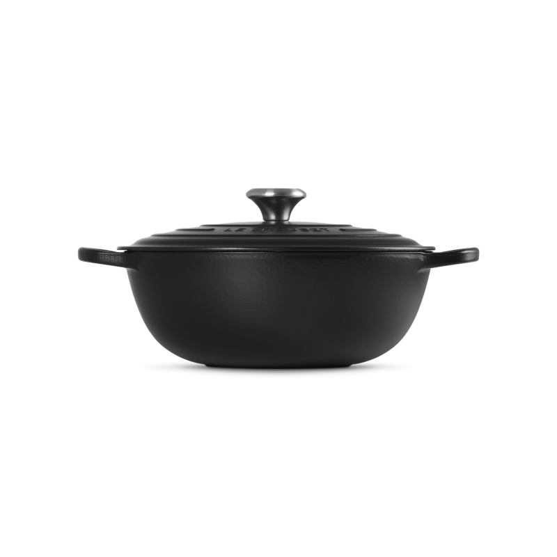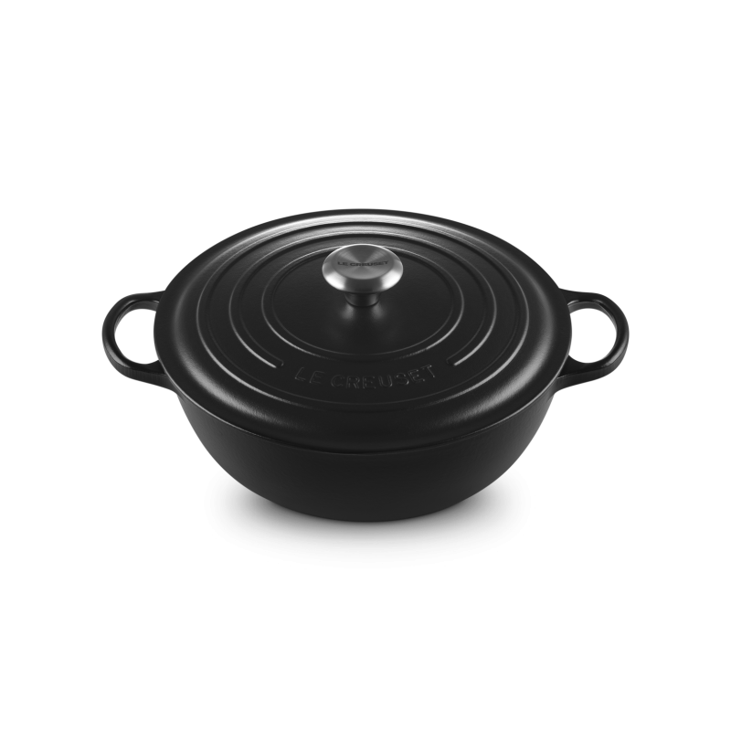 De Le Creuset ronde gietijzeren braadpan van 4,9 L (28 cm) in de kleur Mat Zwart is een functionele, stijlvolle en duurzame braadpan voor het hele gezin. Dankzij de praktische afgeronde zijkanten kun je gemakkelijk door je eten roeren. De perfecte pan voor het maken van boeuf bourguignon, bouillabaisse en vele andere heerlijke stoofschotels.