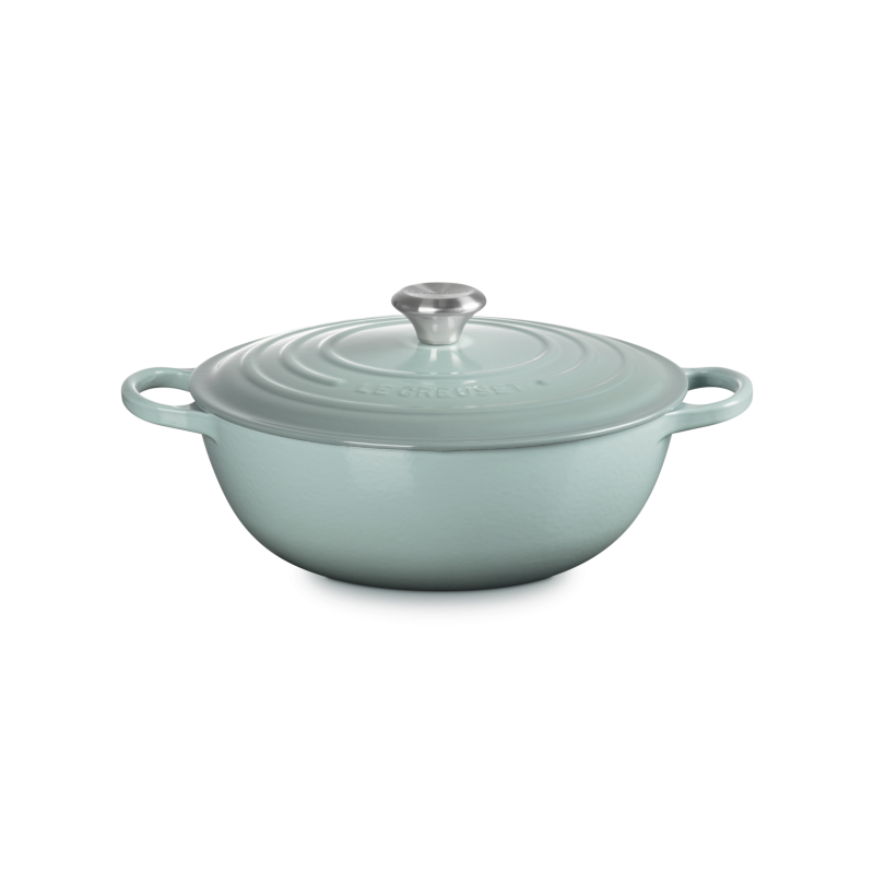 De Le Creuset ronde gietijzeren braadpan van 4,9 L (28 cm) in de kleur Blauw Sea Salt is een functionele, stijlvolle en duurzame braadpan voor het hele gezin. Dankzij de praktische afgeronde zijkanten kun je gemakkelijk door je eten roeren. De perfecte pan voor het maken van boeuf bourguignon, bouillabaisse en vele andere heerlijke stoofschotels.