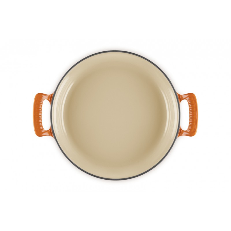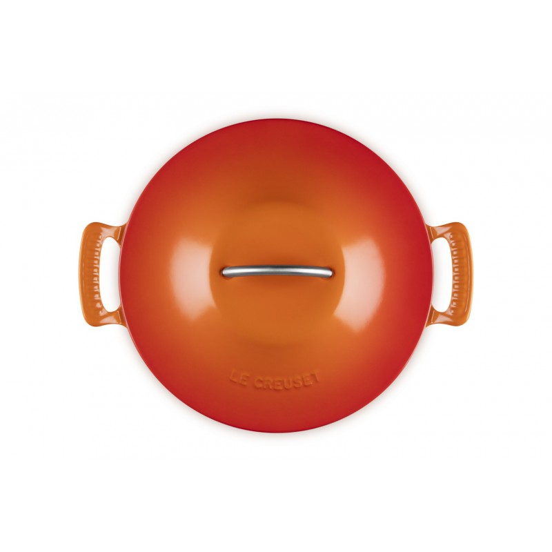 De Ronde Gietijzeren Faitout 2,9 l Héritage Moderne (28 cm) Oranjerood Limited Edition is ideaal voor langzaam sudderen en laat je opnieuw genieten van de smaken van vroeger. Boeuf bourguignon, kalfsblanquette, stoofvlees, pot-au-feu, gestoofd vlees en andere traditionele gerechten zullen geen geheimen meer voor je hebben! Al jarenlang staan de pannen van Le Creuset bekend om hun ongeëvenaarde kwaliteit en precisie bij het koken: het gietijzer zorgt voor een constante en gelijkmatige warmteverdeling over alle wanden, wat een stabiele temperatuur binnenin de pan garandeert. Dankzij het materiaal kan de faitout eenvoudig in de vaatwasser worden gereinigd, en haar stijlvolle ontwerp is perfect voor een winterse soep bij het haardvuur of een zomers ontbijt in de tuin.